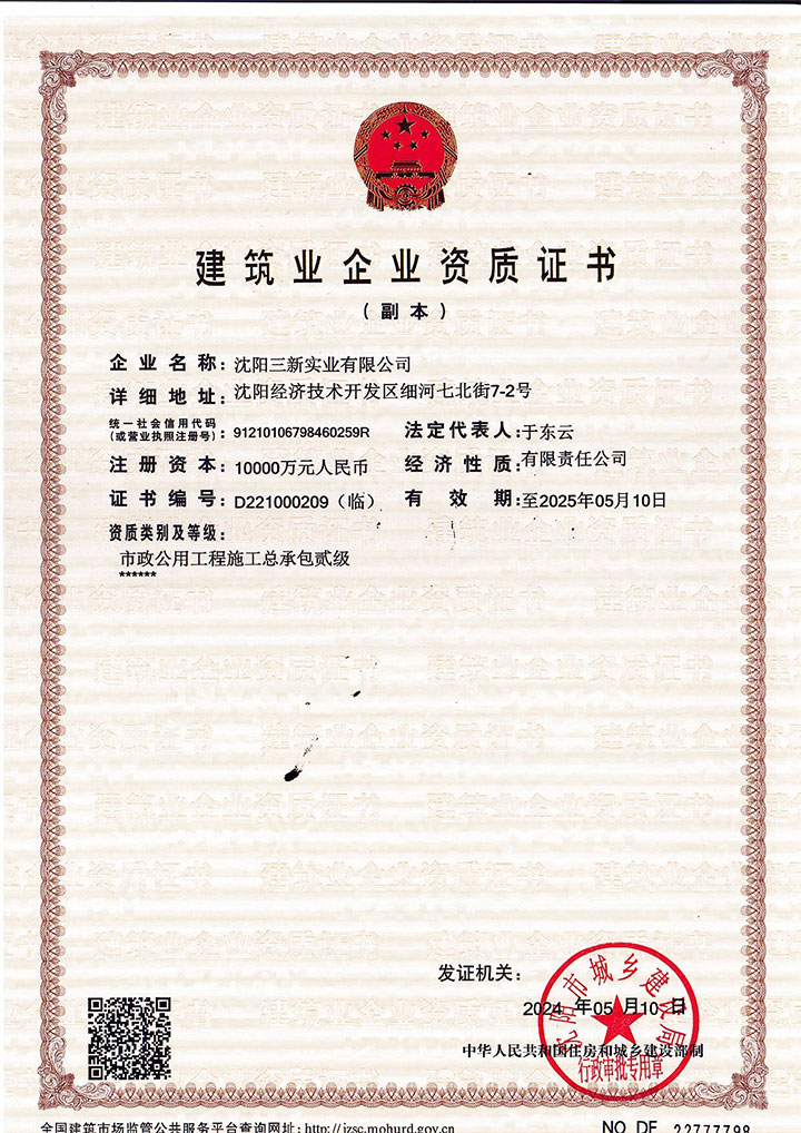 市政公用工程施工總承包貳級(jí)