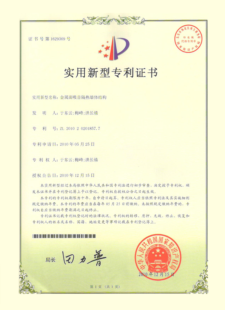 金屬面吸音隔熱墻體結(jié)構(gòu)專利