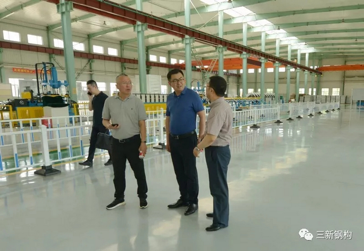 在接近兩個小時的調(diào)研過程中,住建廳領(lǐng)導與洪長禧總經(jīng)理就技術(shù)創(chuàng)新及產(chǎn)業(yè)發(fā)展等話題進行了熱烈的交流和探討,對公司提出了具體的建議和希冀。曹廳長在了解到三新從公司落地沈陽到生產(chǎn)基地的建設(shè),至今一直致力于科技創(chuàng)新,產(chǎn)品和產(chǎn)業(yè)的改造升級,并持續(xù)投入大量資金進行研發(fā),從國外購買了大量世界頂級的生產(chǎn)裝備等情況時,對三新的創(chuàng)新理念和投入由衷的贊嘆,指出技術(shù)領(lǐng)先是核心競爭力,是企業(yè)發(fā)展壯大的基石和保證。洪總表示三新公司的宗旨就是“志創(chuàng)國內(nèi)一流建筑科技企業(yè)”,這些年三新的發(fā)展離不開省住建廳等部門的大力幫助和支持。如今發(fā)展裝配式建筑已經(jīng)上升為國家戰(zhàn)略,所以我們堅信鋼結(jié)構(gòu)裝配式建筑一定會有廣闊的發(fā)展空間和巨大的市場。為此,公司將在鋼結(jié)構(gòu)裝配式建筑領(lǐng)域加快人才培養(yǎng)與引進,壯大科研隊伍,加速新產(chǎn)品、新技術(shù)研發(fā)。力爭在構(gòu)件式裝配式建筑領(lǐng)域取得進一步的創(chuàng)新突破,同時在模塊化建筑方面加速前行,力爭在移動、折疊房屋技術(shù)等方面走在國內(nèi)前列。公司未來5年的發(fā)展將駛?cè)肟燔嚨?,力爭?025年成為國內(nèi)鋼結(jié)構(gòu)裝配式建筑行業(yè)龍頭企業(yè)。同時作為國家首批裝配式建筑產(chǎn)業(yè)基地、國家裝配式鋼結(jié)構(gòu)建筑產(chǎn)業(yè)技術(shù)創(chuàng)新聯(lián)盟常務(wù)理事單位、沈陽市裝配式建筑協(xié)會會長單位,公司也理應(yīng)具有回報社會的責任與擔當,不遺余力為加快沈陽建筑業(yè)產(chǎn)業(yè)轉(zhuǎn)型升級,為沈陽的發(fā)展和騰飛做出應(yīng)有貢獻。