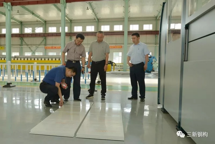 省廳領(lǐng)導在公司總經(jīng)理洪長禧的陪同下參觀了公司裝配式建筑及幕墻生產(chǎn)基地和生產(chǎn)線,并對三新裝配式建筑實體模型和部品進行了詳細的了解。曹廳長、王處長對三新裝配式鋼結(jié)構(gòu)建筑體系及先進的生產(chǎn)裝備給予了高度的評價,認為產(chǎn)品設(shè)計理念、制作工藝、安裝水平達到國內(nèi)領(lǐng)先。