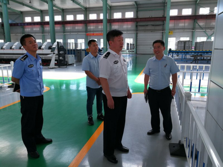 7月20日下午,開發(fā)區(qū)公安分局魏智勇局長及紀檢室主任周剛帶隊在公司副總經(jīng)理吳龍陪同下,對我公司生產(chǎn)車間進行走訪。魏局長及周主任參觀了公司車間和裝備,對我公司的產(chǎn)品以及公司在疫情期間的生產(chǎn)和經(jīng)營情況給予了高度評價。