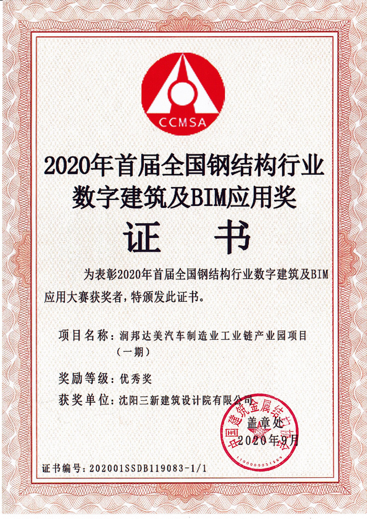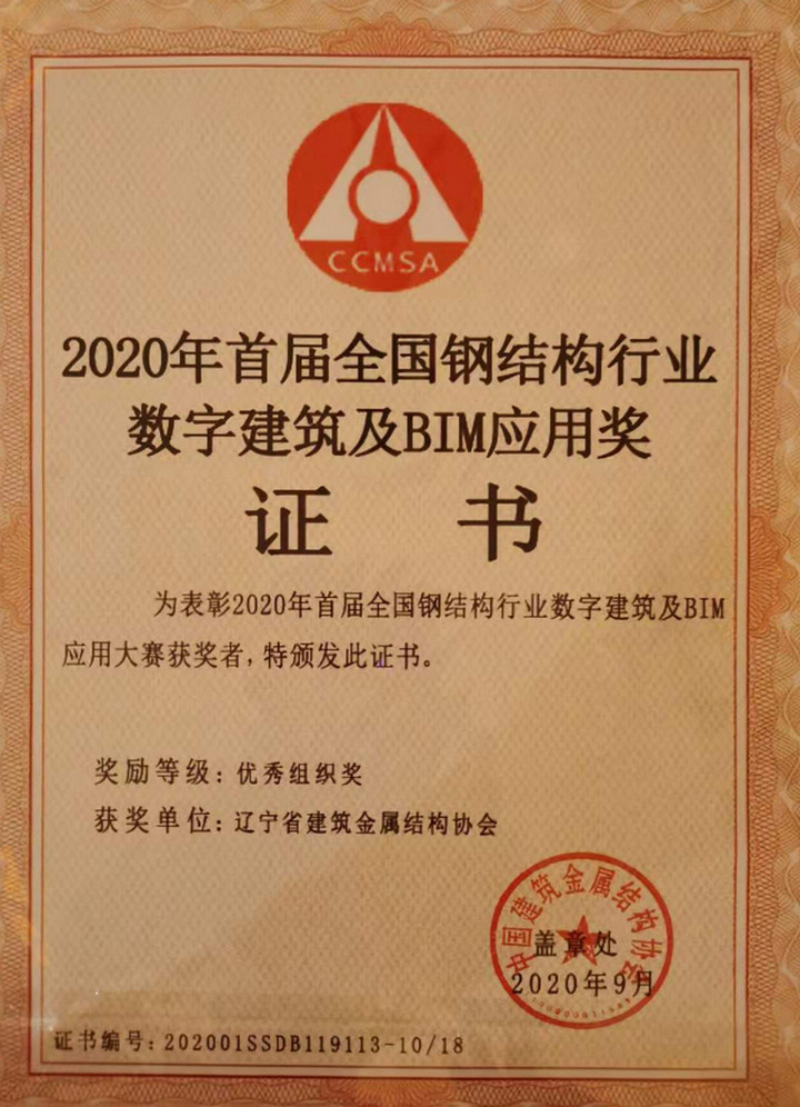 大會(huì)對(duì)2019年度行業(yè)貢獻(xiàn)突出企業(yè)進(jìn)行了表彰。我公司獲頒“金屬屋墻面行業(yè)競(jìng)爭(zhēng)力前十名企業(yè)”、“2019年度建筑鋼結(jié)構(gòu)行業(yè)50強(qiáng)企業(yè)”、“中國建筑鋼結(jié)構(gòu)行業(yè)2019年度誠信企業(yè)”稱號(hào)。公司BIM 團(tuán)隊(duì)榮獲“2020年度首屆全國鋼結(jié)構(gòu)行業(yè)數(shù)字建筑及BIM應(yīng)用大賽優(yōu)秀獎(jiǎng)”,李青山榮獲“2019年度全國鋼結(jié)構(gòu)工程優(yōu)秀建造師”,張毅在“集成房屋行業(yè)抗疫感人事跡”公益活動(dòng)中表現(xiàn)突出,被評(píng)為“最美逆行者”。