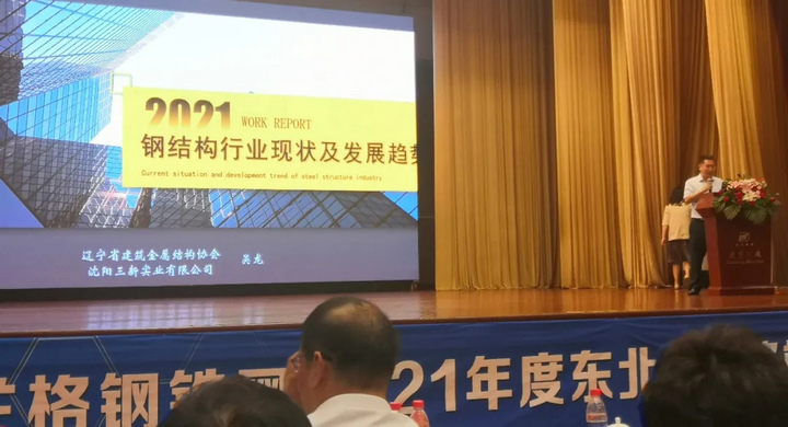 在主題演講環(huán)節(jié),三新集團(tuán)副總經(jīng)理兼遼寧省建筑金屬結(jié)構(gòu)協(xié)會(huì)副秘書長吳龍就“2021鋼結(jié)構(gòu)行業(yè)現(xiàn)狀及發(fā)展趨勢(shì)”發(fā)表了精彩演講。他從建筑鋼結(jié)構(gòu)企業(yè)區(qū)域分布,遼寧地區(qū)鋼結(jié)構(gòu)行業(yè)現(xiàn)狀和發(fā)展趨勢(shì)等方面進(jìn)行了詳細(xì)介紹。
