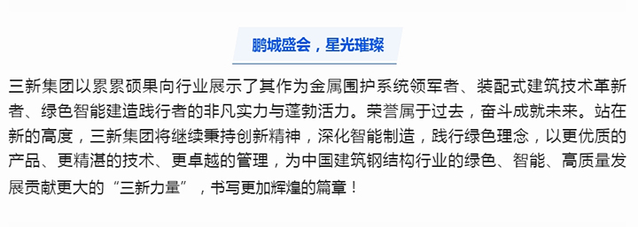 閃耀鵬城!三新集團(tuán)全國鋼結(jié)構(gòu)行業(yè)大會(huì)載譽(yù)歸來,創(chuàng)新與實(shí)力鑄就輝煌!