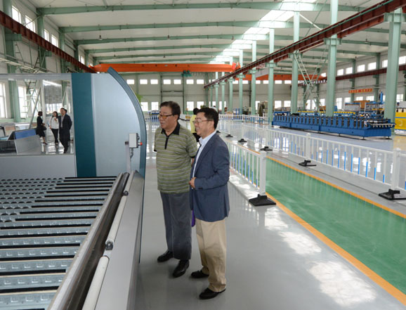 在公司總經(jīng)理洪長禧先生率領(lǐng)高層管理人員熱情引領(lǐng)下,考察團一行參觀了公司廠區(qū)和生產(chǎn)情況。洪總詳細(xì)介紹了企業(yè)情況。在公司金屬板材加工車間,姚兵先生及嘉賓饒有興致地參觀了從德國、意大利、瑞士等國家引進的數(shù)字化金屬板材柔性生產(chǎn)線,并對公司的金屬幕墻產(chǎn)品進行了詳細(xì)的考察。