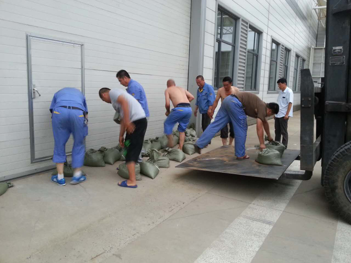 7月20日晚,為應(yīng)對當(dāng)晚的強降雨帶來的洪水威脅,公司啟動了防洪應(yīng)急預(yù)案。公司組織生產(chǎn)基地生產(chǎn)技術(shù)部大部分員工及工程部、綜合管理部和供應(yīng)儲運部部分員工,進行了防汛抗洪的準(zhǔn)備工作。當(dāng)晚22時左右,在大家的共同努力下,防汛工事全部構(gòu)筑完成,使公司財產(chǎn)免受洪水威脅。在此次防汛抗洪行動中,所有人員顧全大局、視廠為家、不畏酷暑及蚊蟲叮咬,盡職盡責(zé),圓滿完成任務(wù)。為弘揚這種精神,公司決定對參加此次防汛抗洪的人員給予通報表彰并發(fā)獎金。