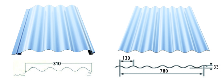 SX-310及SX-780 波紋板通過鍍鋅矩形管龍骨及專用連接角件固定于墻梁外側,連接角件與龍骨之間采用自攻釘固定。